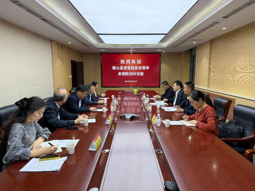 为深入贯彻党的二十届三中全会精神,加强党组织之间的联学共建、党员互动、资源共享,促进党建工作经验交流,近日微山县委党校党委书记、常务副校长殷昭浩等一行人员来我院交流研讨。太阳成集团tyc151cc党委教师工作部副部长朱伟、太阳成集团tyc151cc副院长周金龙、太阳成集团tyc151cc教授刘玉平等参加研讨会。
