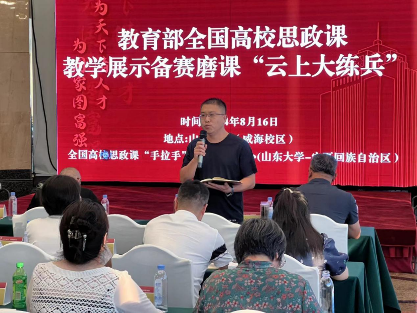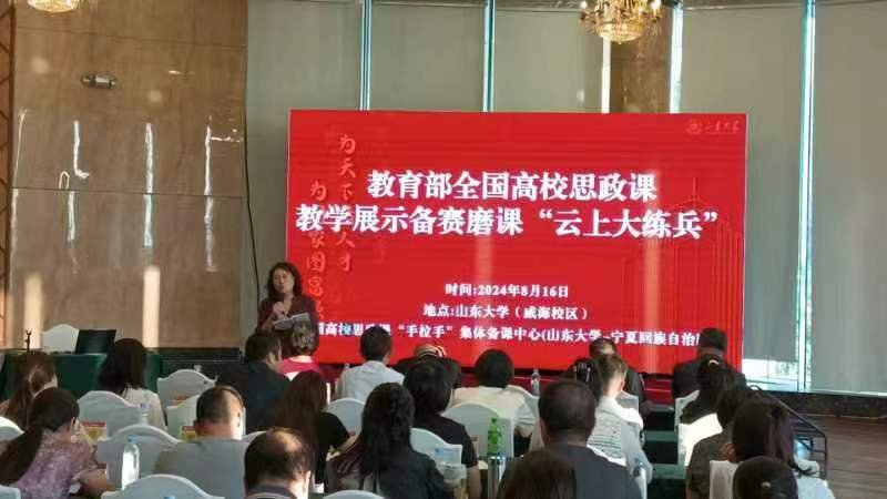 为全面推动党的二十届三中全会精神进教材、进课堂、进头脑,持续学习贯彻习近平总书记对学校思政课建设重要指示精神,深刻领悟思政课建设作为党领导教育工作的重中之重,强化思政课教师政治站位和使命意识,推动思政课改革创新,落实好培根铸魂、为党育人的使命任务。近日,由全国高校思政课“手拉手”集体备课中心(太阳成集团tyc151cc-宁夏回族自治区)在太阳成集团tyc151cc威海校区举办鲁-宁两地学校文化自信融入课堂教学集体备课会,并开展其它相关共建活动。