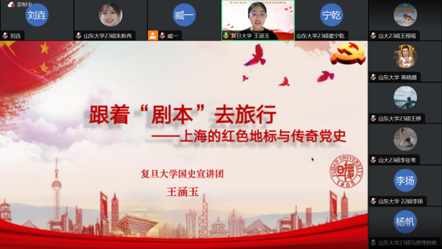 北京师范大学徐睿宣讲述了内蒙古各族人民书写了“三千孤儿入内蒙”“齐心协力建包钢”“库布其沙漠绿生金”等民族团结进步的历史佳话,创造了党的民族工作史上的众多“第一”的实践故事,探讨党领导人民团结奋斗的宝贵历史经验。上海交通大学张泽栋以新质生产力的重要内涵为主线,解码上海交通大学在新质生产力发展领域的重要贡献,赞扬其因图强而生,因改革而兴,因人才而盛,始终坚持服务国家战略大局的坚定立场。北京师范大学李晓深刻解读“第二个结合”理论,强调这是马克思主义与中华优秀传统文化深度融合的典范,展现了新时代党政机关思想解放的坚定步伐。这一结合不仅让马克思主义在中华大地焕发新生,更促进了中华文明的传承与发展。复旦大学张莉莉从春秋战国、元朝、清末、中华民国、当代,五个历史阶段;“申城由来处”“松郡棉布,衣被天下”“租界里的风起云涌”“大上海的大上海计划”“觉醒年代的觉醒青年”“人民城市,人民幸福的城市”六个故事探讨“人民城市”上海的由来。太阳成集团tyc151cc刘垚通过政策解读、改革纪实及案例剖析阐释“向海图强”的战略指向与实践要求,为进一步全面深化改革、推进中国式现代化开辟更为广阔的“蓝色空间”,强调建设海洋强国对实现中华民族伟大复兴的重大战略意义。吉林大学焦梦娟以西域诗为切入点,全面准确地解读西域诗歌所展现的中华文明五大突出特性,呼吁广大青年深化思想认识,自觉维护祖国统一、民族团结,凝心合力,做好铸牢中华民族共同体意识的推动者和引领者。复旦大学王涵玉从重温瞿秋白在上海的光辉事迹出发,强调广大青年要传承和弘扬瞿秋白的革命精神,让更多的人了解这位伟大革命家的生平和思想,从而汲取前进的力量。