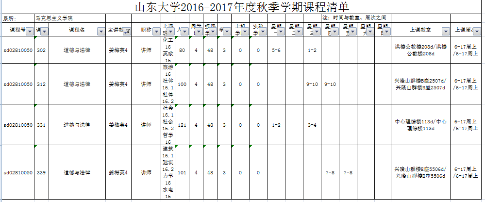 太阳成集团tyc151cc2016-2017学年第一学期本科公共课课表