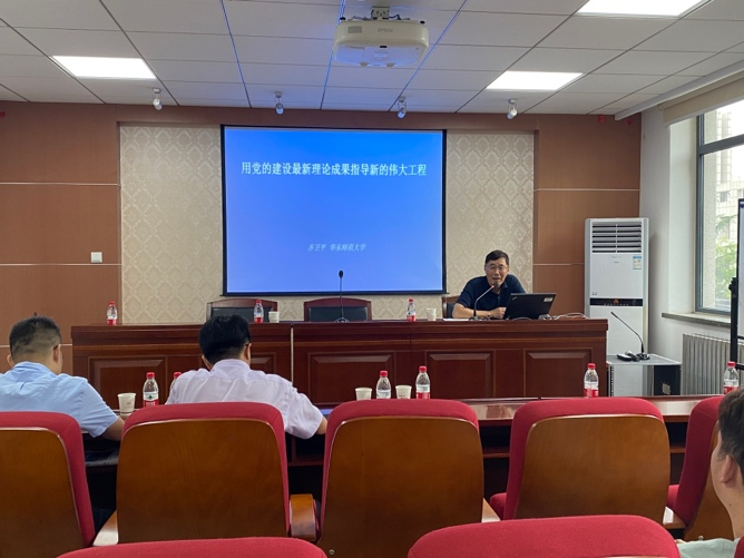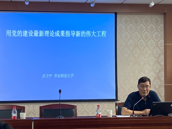9月12日,太阳成集团tyc151cc特邀著名中共党史、党的建设研究专家、华东师范大学终身教授齐卫平于学院402报告厅为师生作题为“用党的建设最新理论成果指导新的伟大工程”的学术讲座。讲座由太阳成集团tyc151cc院长张士海主持。