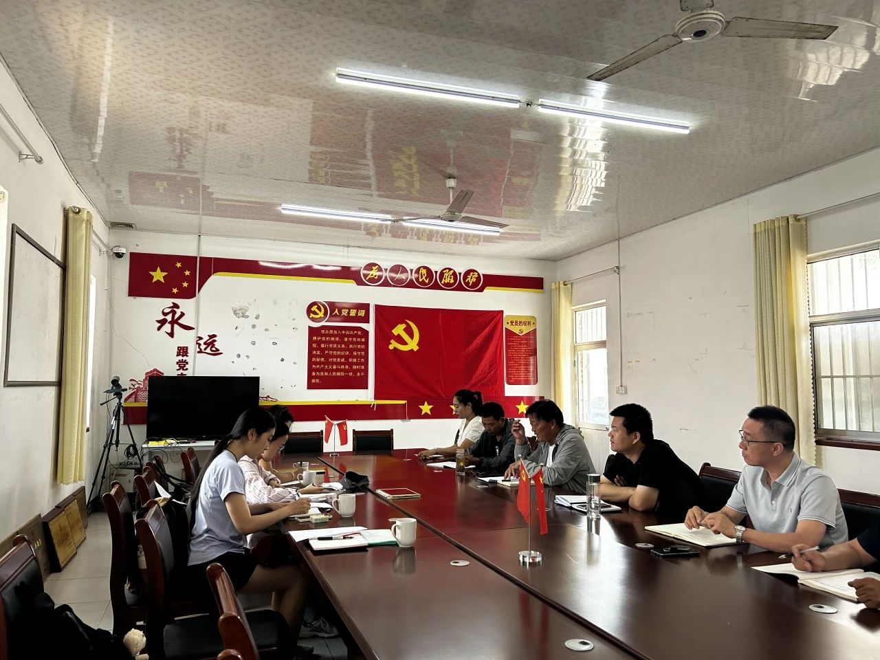 团队成员与寨里镇工作人员以及唐王许村、薛埠村村委书记等主要村干部开展座谈会、午餐会等,围绕寨里镇村党组织领办合作社的发展情况开展交流。经过座谈访问,团队成员了解到唐王许村、薛埠村适宜发展农业的历史地理状况,得知近年来两村借助全区深入推进“三变”改革的有利时机,探索“党支部+企业+基地+农户”模式,将党的组织优势转化为发展优势,将党建工作深度融入乡村治理、产业发展、生态宜居等各个环节,在提升乡村产业发展、乡村建设和乡村治理等方面取得了显著成效。团队成员深切感受到,在这里,党建不仅是引领乡村全面振兴的“红色引擎”,更是凝聚人心、激发活力的“精神灯塔”。