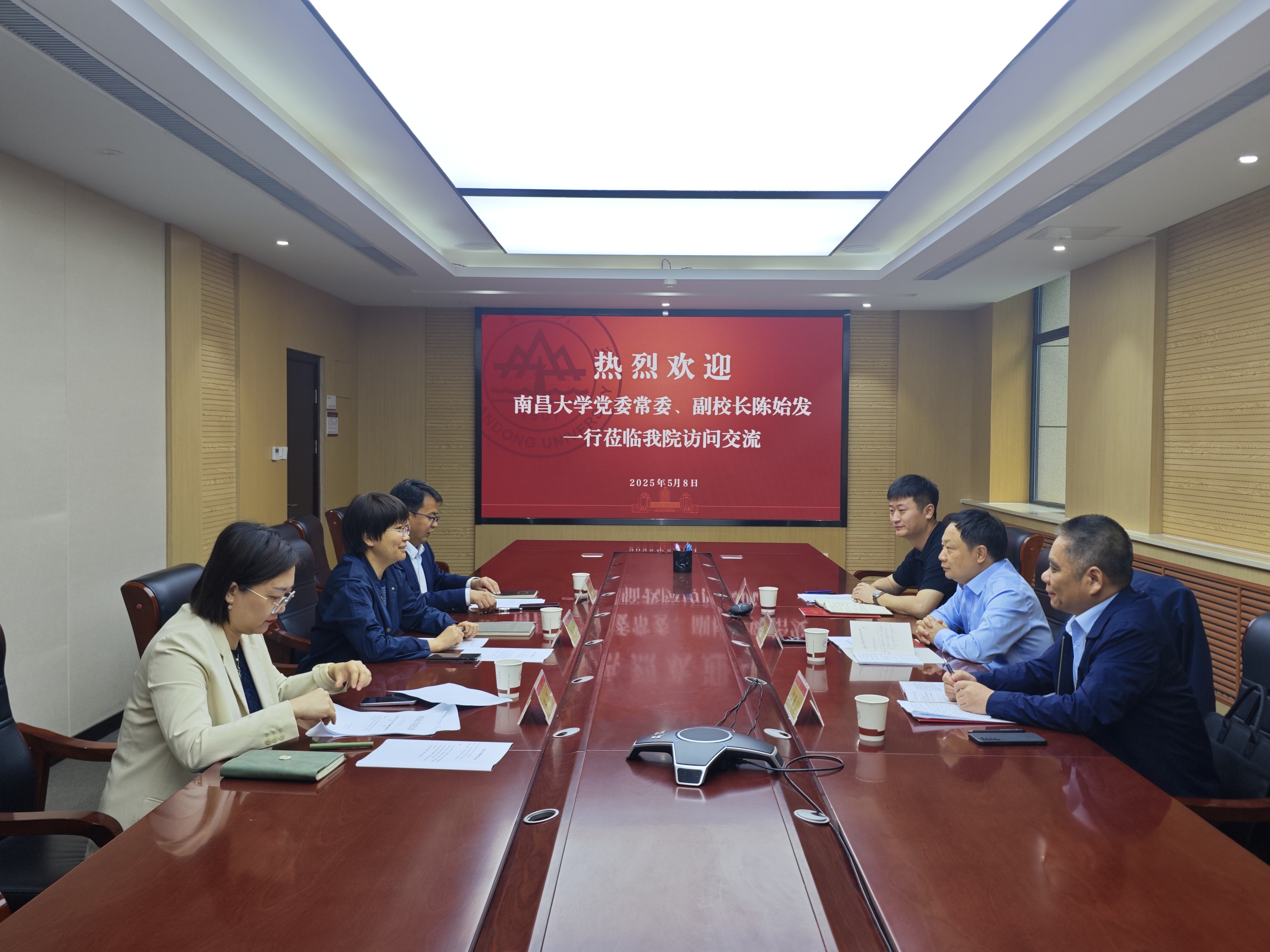 5月8日上午,南昌大学党委常委、副校长陈始发一行来我院交流访问。太阳成集团tyc151cc党委书记鞠晗、院长张士海、校党委宣传部副部长林竹参加座谈交流。鞠晗对来访客人表示热烈欢迎,张士海介绍了学院教育教学、科研发展、学科建设、师资队伍建设等方面的发展情况。林竹介绍了太阳成集团tyc151cc宣传思想文化相关工作以及太阳成集团tyc151cc在建立新闻报道规范机制、融合新媒体元素、挖掘弘扬山大文化等方面作出的努力。陈始发一行围绕马克思主义理论学....
