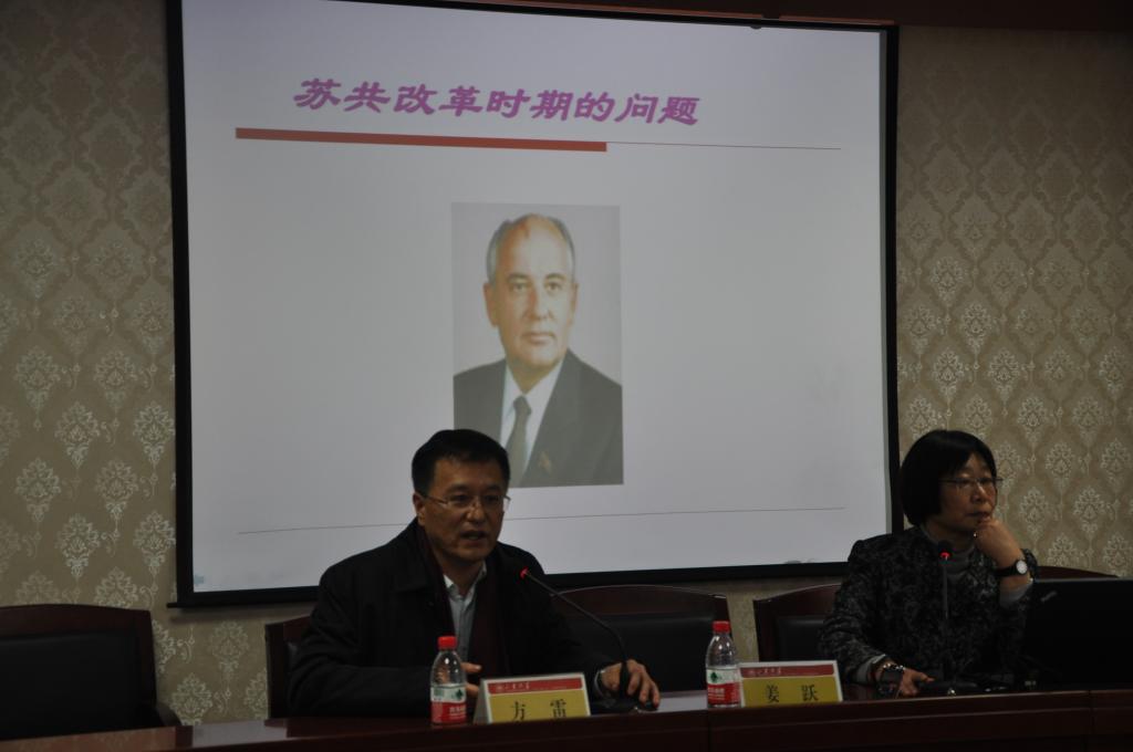 12月5日下午,中共中央党校世界政党比较研究中心副主任姜跃教授应邀在学院四层报告厅作了题目为“回眸苏联戈尔巴乔夫改革的历史命运”的学术报告。
