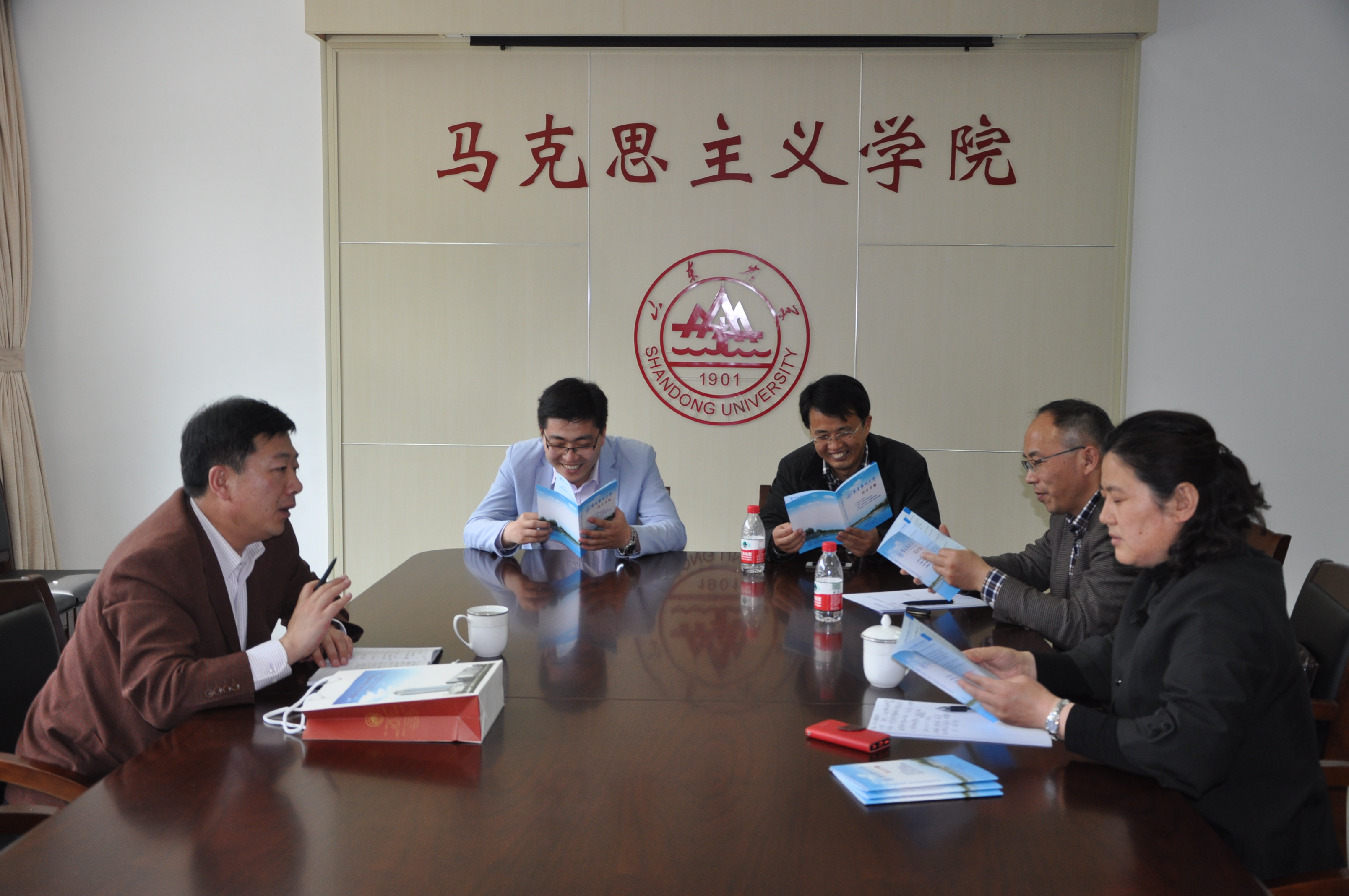4月22日下午,山东省广饶县红色刘集管委会主任、《共产党宣言》纪念馆馆长张锋一行三人应邀来我院交流。