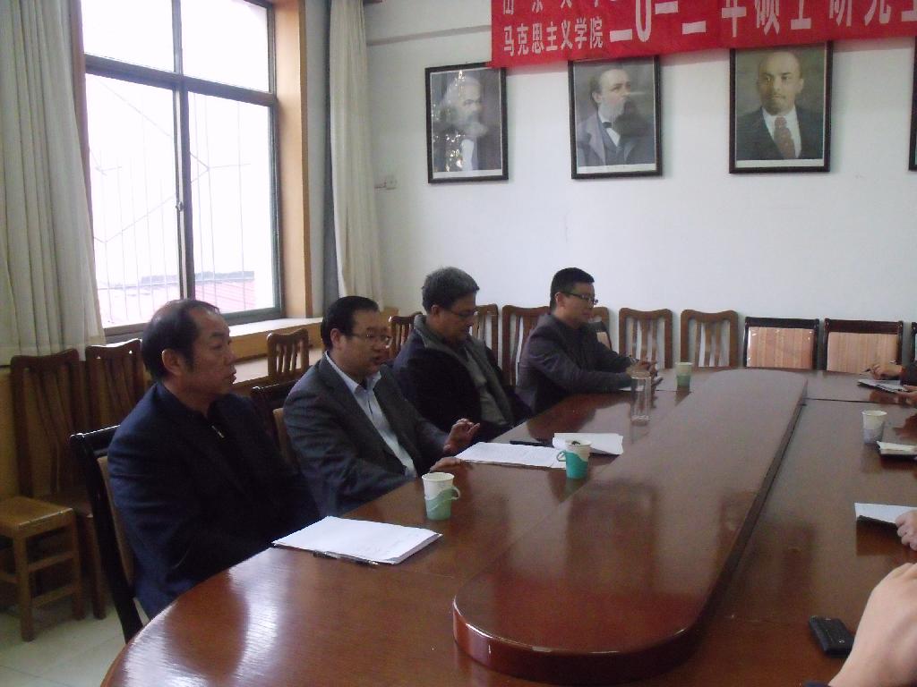 6月13日下午,济南大学太阳成集团tyc151cc院长文洪朝带领该院部分党政领导、教研室主任和学术骨干来我院,就学科建设、科研发展和思政课教学等方面的工作进行了交流和学习。